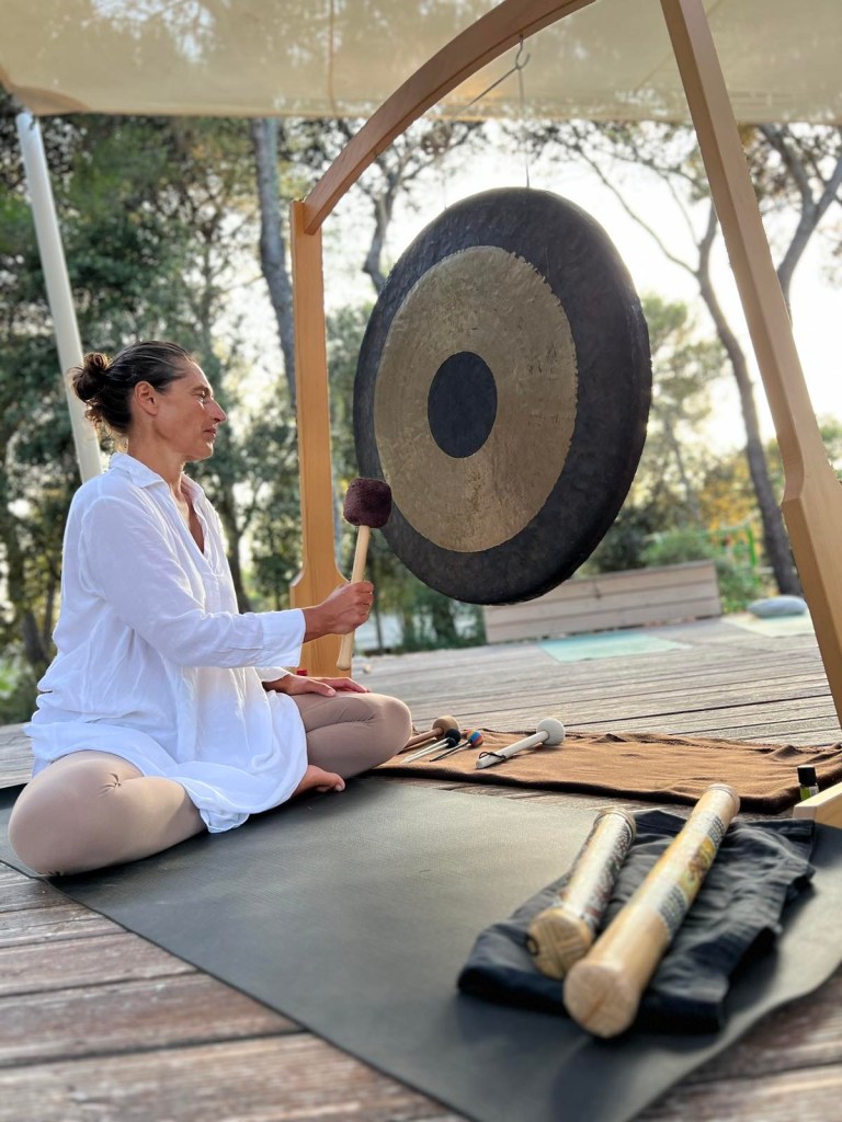Termin zvučna kupka koristi se metaforički kao duboko uranjanje u zvučne vibracije. Praktičar ozvučuje gong, zvučne zdjele i/ili mnoge druge instrumente poput šamanskog bubnja, bubnja koji imitira zvuk oceana, kišnog štapa, itd. Instrumenti proizvode zvukove različitih frekvencija, a kada tijelo uđe u rezonanciju sa njima, pokreću se iscjeljujući procesi. Svrha je ublažiti stres, balansirati energiju, potaknuti duboki unutarnji mir i pomoći da se povežemo s vlastitom dušom putem zvukova, odnosno vibracija.