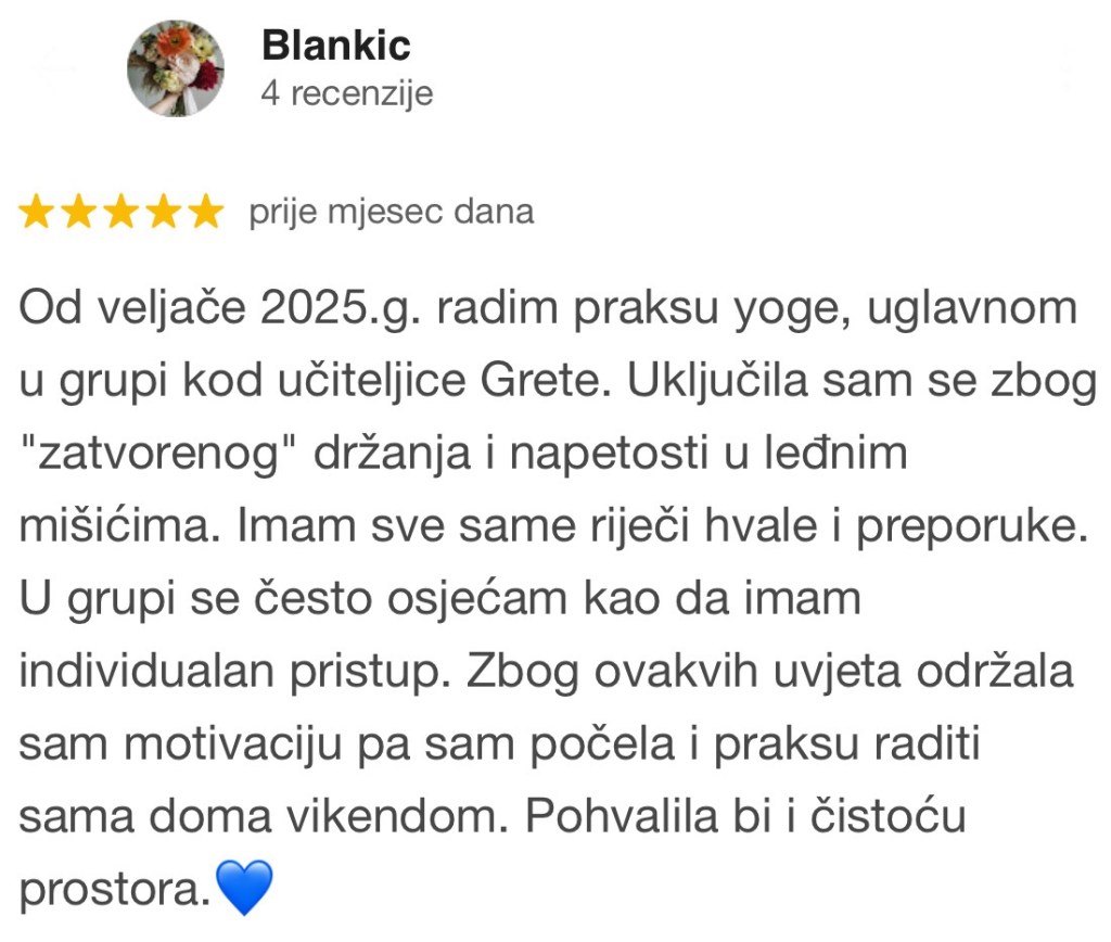 ✓ 1-2 yoga grupe ili Ashtanga Mysore