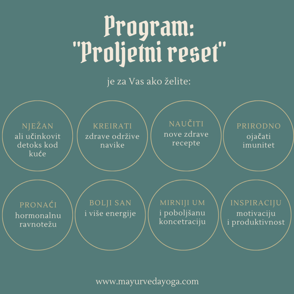 - Općenite ayurvedske i sezonske smjernice za rutinu i prehranu u obliku e-knjižice